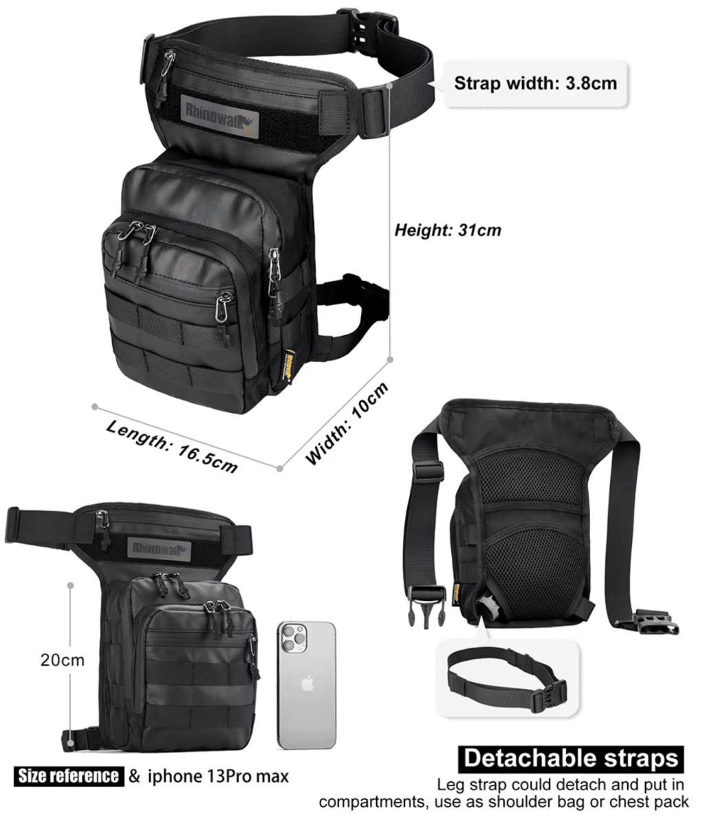 Puede ser utilizada de 4 formas: muslera, banano, bolso de pecho, bolso de hombro